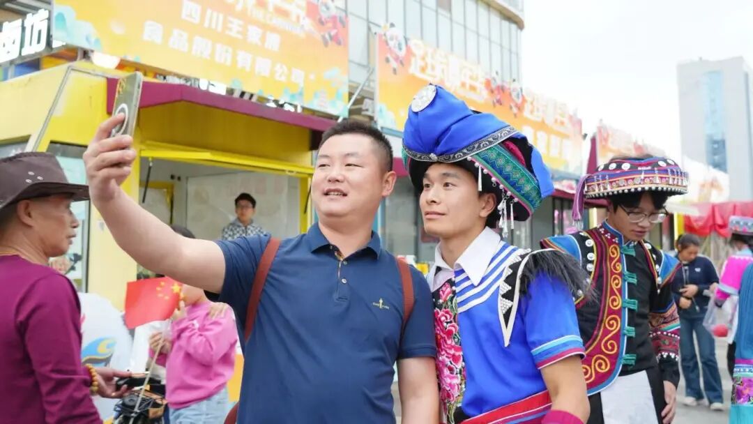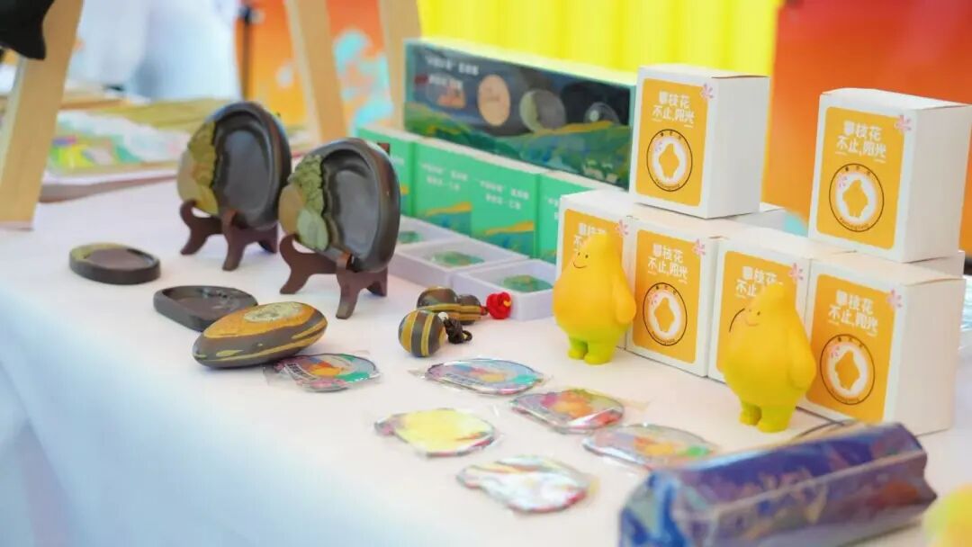 展台上芒果、石榴等当季水果色泽鲜亮,芒果冻干等试吃品香气四溢,精美的俚颇彝绣、苴却砚文创以及“攀芒芒”等文创周边设计精巧,凭借浓郁的地域特色与鲜活的产品魅力,吸引了眉山市民驻足品尝、询问,展台前始终人头攒动,成为嘉年华现场的热门打卡点。