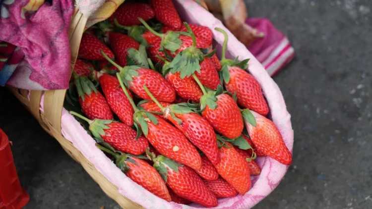 在中坝乡中坝村,草莓园的格桑花与百日菊花花期正好,游客穿梭其间,欢声笑语与清甜的草莓果香交织。商户们麻利地称重、打包,为市场注入鲜活的年味。