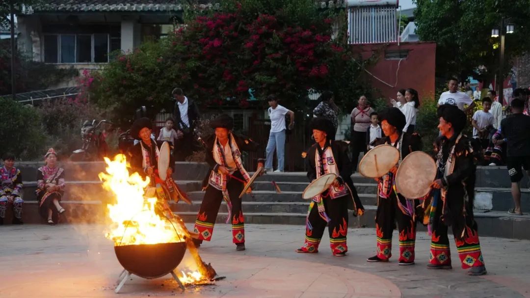 夜幕降临,杨家四合院灯光如昼,一道道特色美食被端放在铺满松针的地面上,大家围坐在一起,喝酒、聊天、唱歌、跳舞,享受团聚时光。一桌佳肴,承载着俚颇儿女对亲情、友情的珍视和对团圆的渴望。