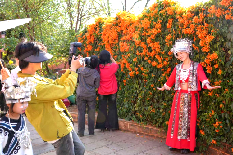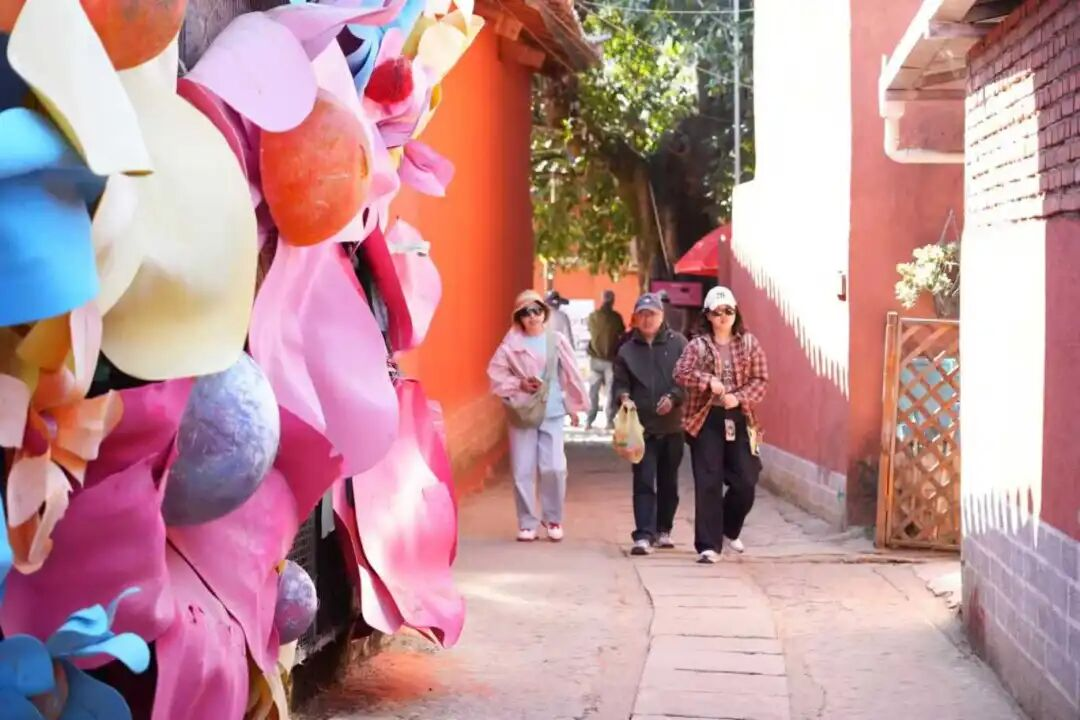古村的热度不仅辐射周边省市,更吸引了千里之外的游客。从山西跨越2000公里而来的李亚红一家,对迤沙拉的春节氛围赞不绝口:“今年选择远行团圆,真是来对了!老家还穿着厚外套,这里却阳光明媚、温暖如春,孩子们可以尽情奔跑玩耍,既舒服又开心。”