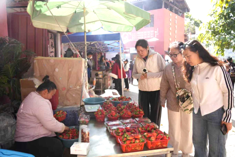 除了精彩纷呈的文旅活动,村里琳琅满目的时令水果和土特产也备受游客青睐,成为大家打卡之余必购的春节伴手礼。