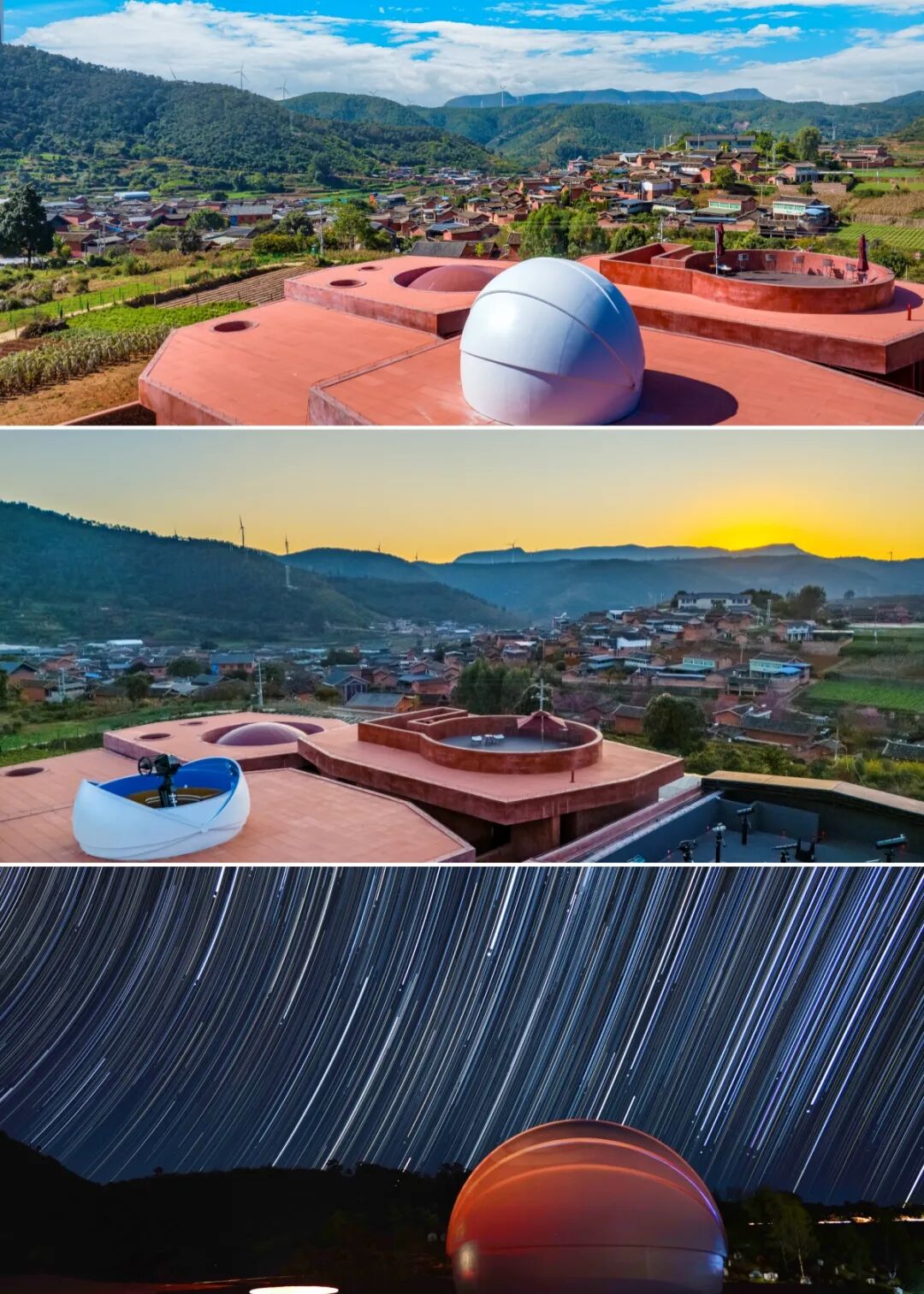 在四川最南端的层峦叠嶂之中,迤沙拉村静卧一隅,红墙青瓦,沐浴着岁月的宁静。步入村内,一座形如天外陨石的建筑便悄然浮现——这便是迤沙拉星空观测基地·川南天文台。它仿佛本就是这片土地生长出的诗意符号,静静等待每一个渴望与星空对话的灵魂。