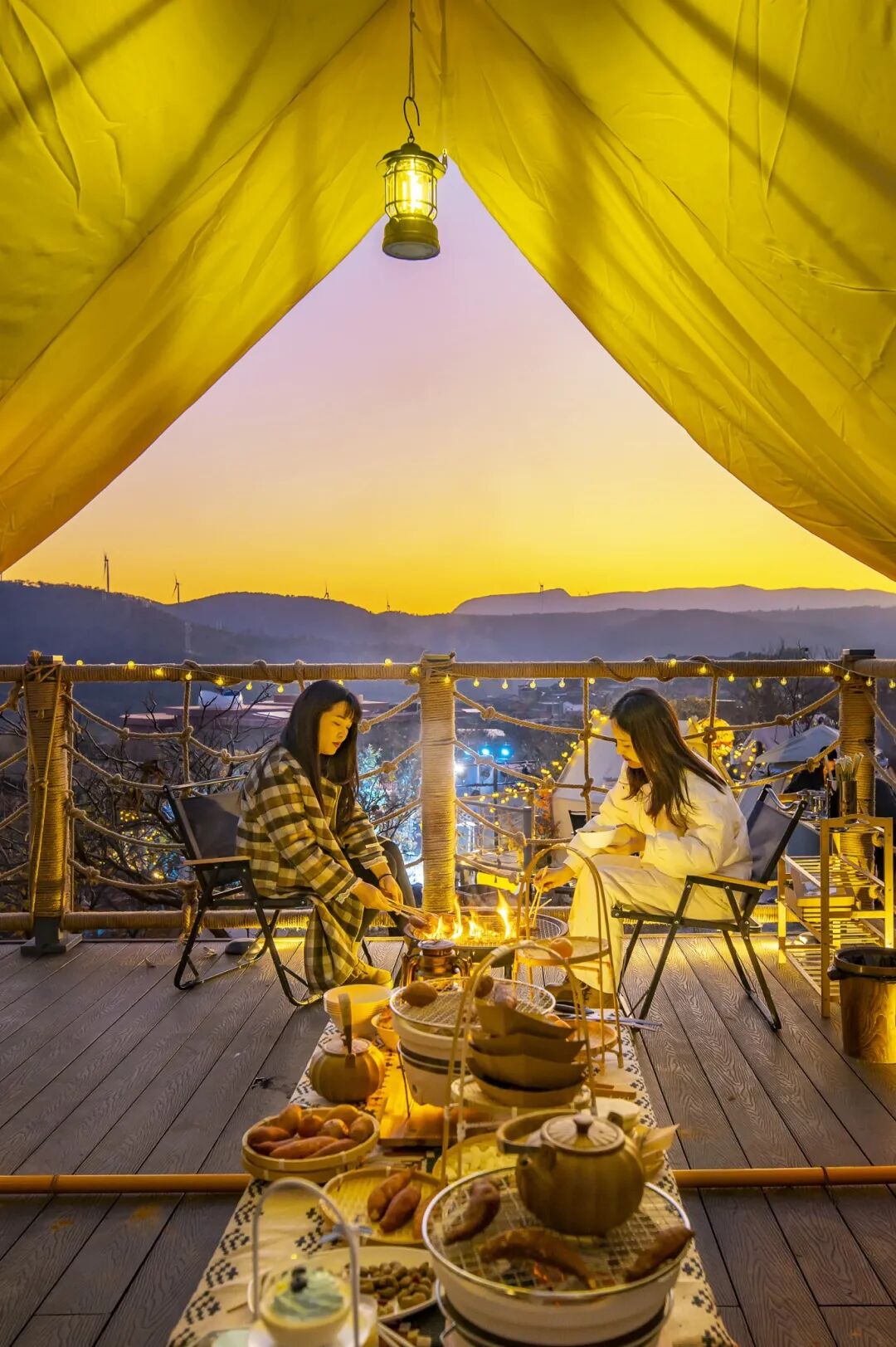 基地一旁,是26°N星空露营地。从精密的天文望远镜前拾回目光,便可以瞬间切换至另一种闲适的节奏:在星空下与好友烧烤畅谈,以草地为席,以苍穹为幕;或用镜头记录下帐篷、灯火与银河同框的难忘瞬间。从容迎接山间的第一缕晨光,看日出日落为红土地与古老村落绘上流动的色彩。