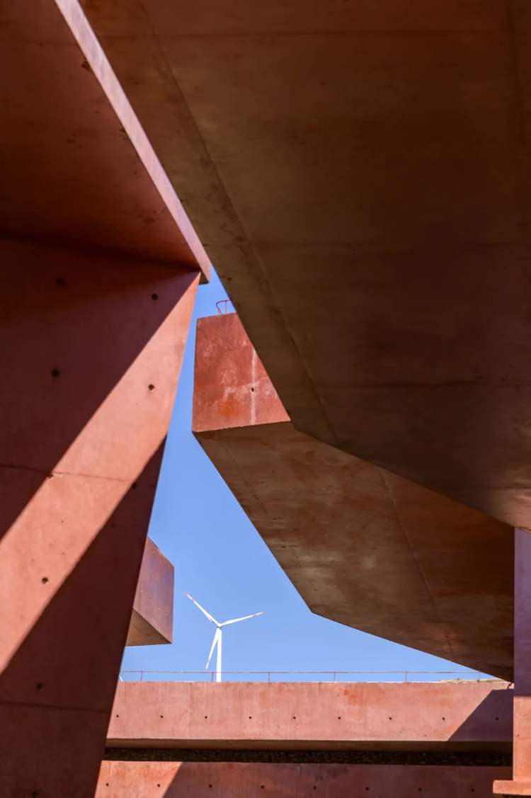 迤沙拉星空观测基地·川南天文台以“光与混凝土的对话”为建筑美学核心,红色夯土基调搭配原生肌理的混凝土墙体,从空中俯瞰宛如红色星云散落丘陵间。条形窗与穹顶观测口将日光切割成灵动光斑,让建筑成为自然的一部分,更将天文科技与创意实践结合,成为建筑赋能科创生态的典范。