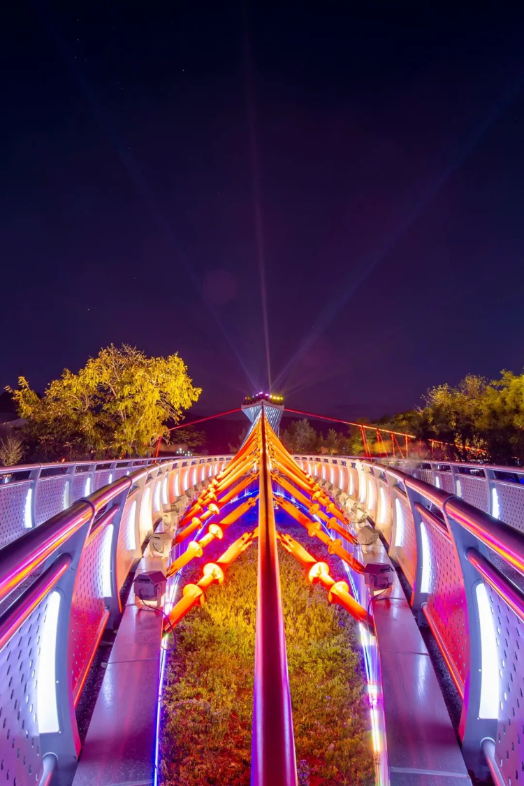 “蜻蜓于飞”桥以 “穿花蛱蝶” 为设计灵感,三条梭形桥面搭配轻盈拉索,横跨大河宛如蜻蜓展翅。桥身造型精美独特,灯光绚丽多彩,连接苴却砚博物馆与苴却砚街区,成为城市标志性打卡地。