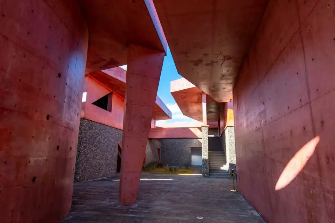 如果计划观星,建议直接入住迤沙拉星空观测基地民宿。这座建筑本身就是一个打卡点——由上海同济大学规划设计院主持设计,以红色陨石为灵感,采用国内罕见的整体浇筑工艺,将古朴与简约现代风格完美融合。