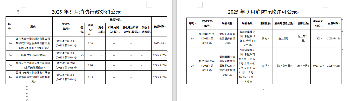 2025年9月消防行政处罚、行政许可公示.doc 2025年9月“双随机、一公开检查结果公示.xls 2025年10月“双随机、一公开”抽取任务公示表.xls