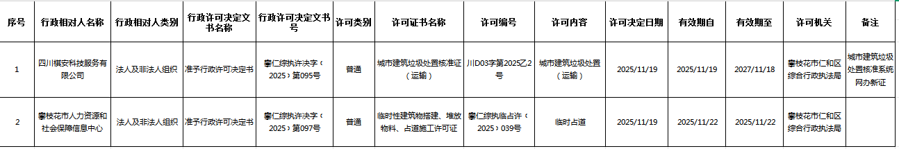 仁和区综合行政执法局行政许可信息公示(11.17-11.20)