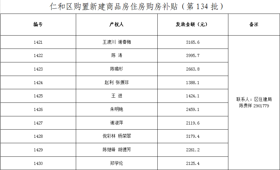 仁和区购置新建商品房住房购房补贴第134批