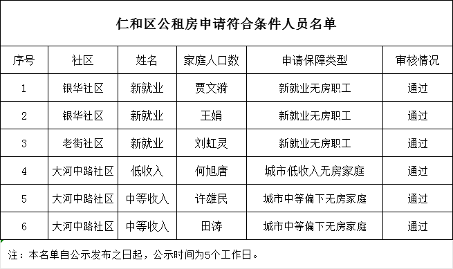 2026年仁和区公租房申请符合条件人员名单公示