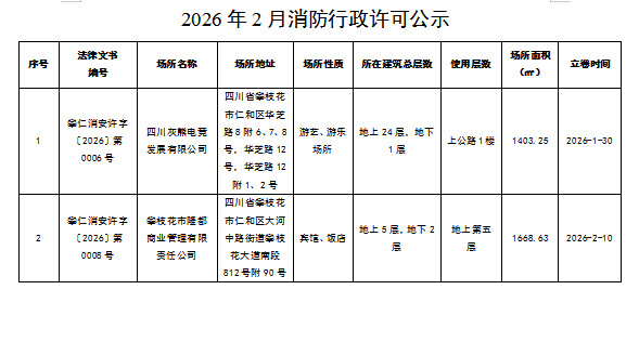 2026年2月消防行政处罚、行政许可公示.doc 2026年3月“双随机、一公开”抽取任务公示表.xls 2026年2月“双随机、一公开检查结果公示.xls