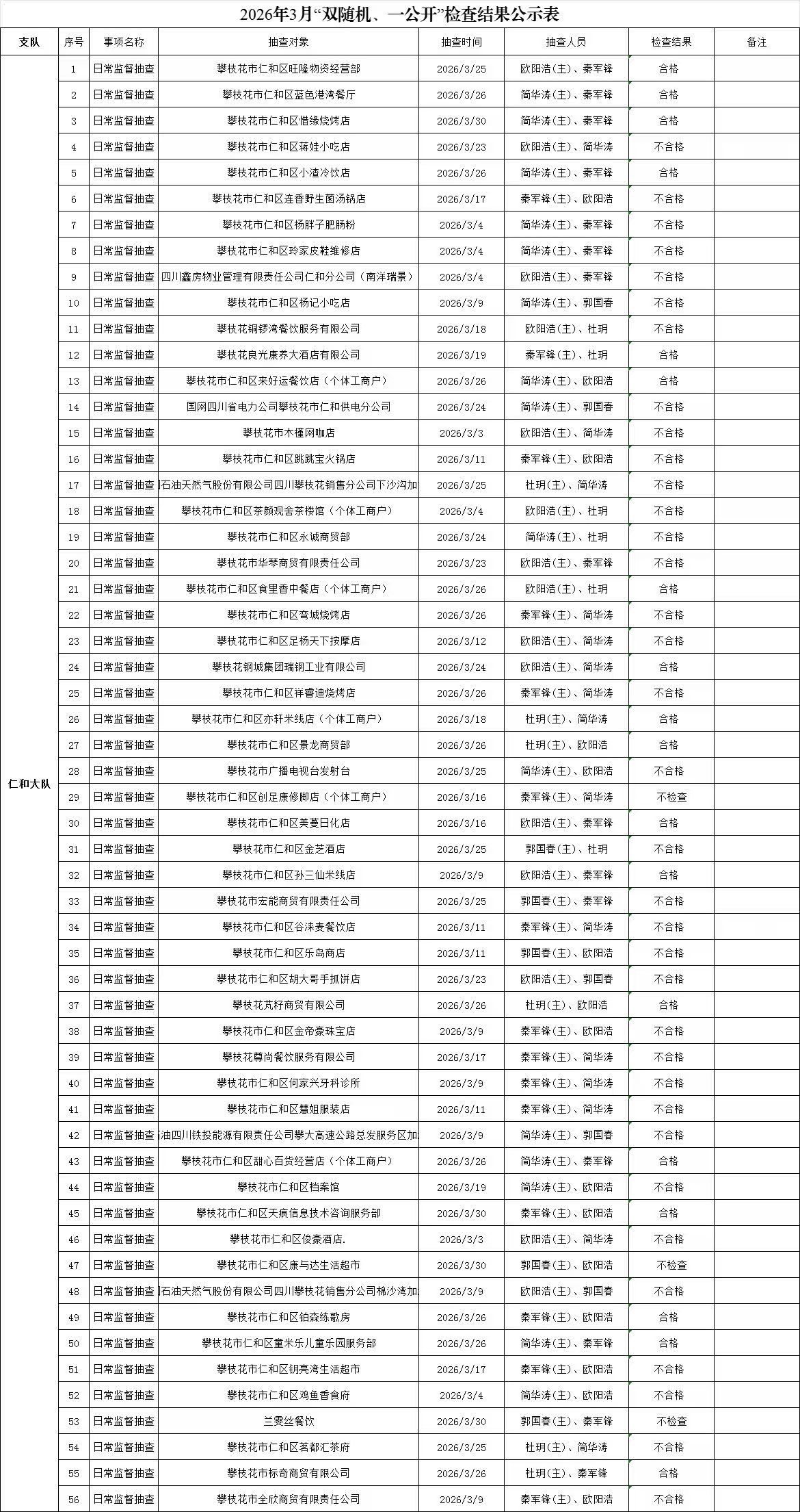 2026年3月消防行政处罚、行政许可公示.doc 2026年3月“双随机、一公开检查结果公示.xls 2026年4月“双随机、一公开”抽取任务公示表.xls