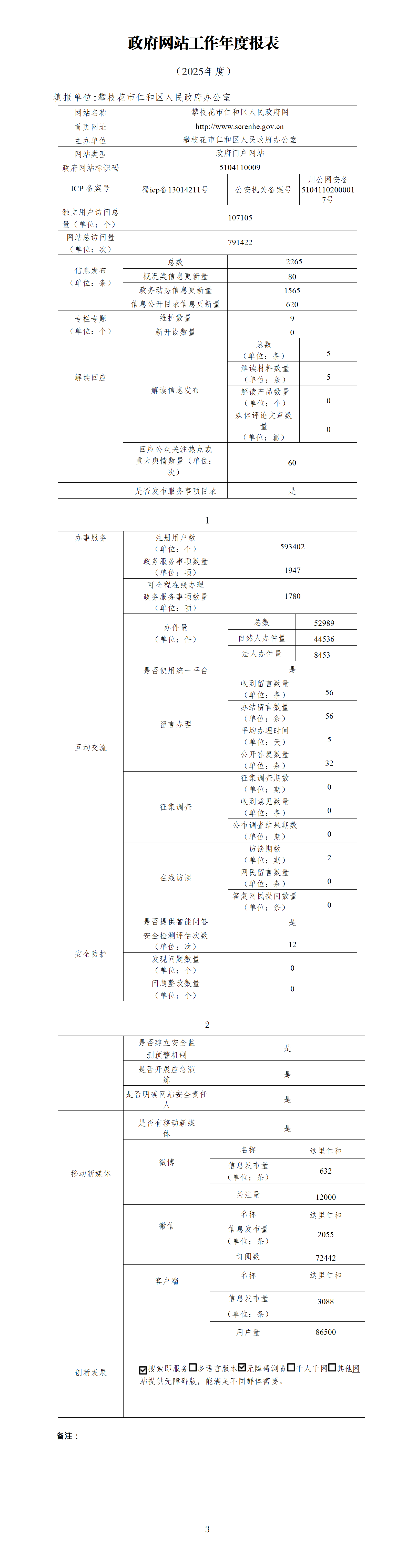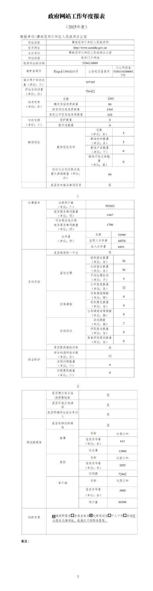 攀枝花市仁和区人民政府网站工作年度报表(2025年度)
