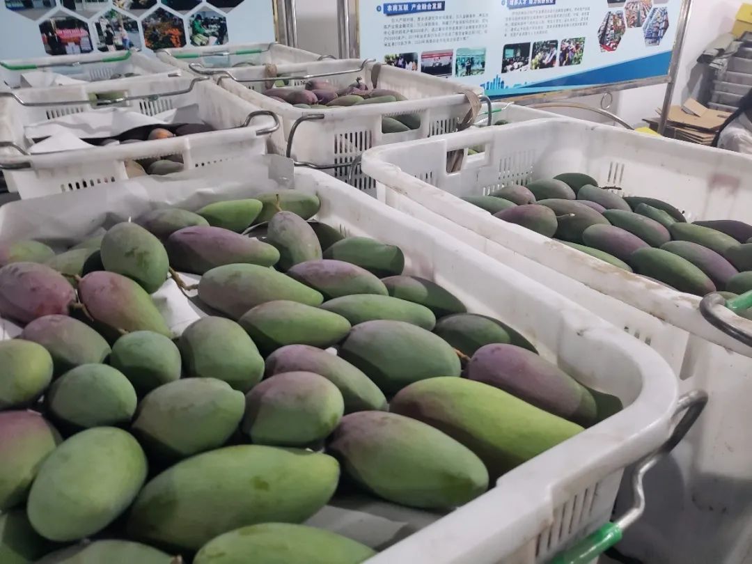刚走近园区的发货中心,就闻到了扑鼻的芒果香。工人们正仔细地包装每一个芒果,准备发往全国各地。据了解,截止6月7日中午12点,园区累计销售芒果8802件43000余斤。不仅仅需求量较直播前大大提升,芒果的收购价也有所上涨。红贵妃每斤涨5毛钱左右,达4.5—5元/斤,椰香芒每斤涨1块钱,达5.5—6元/斤。园区预计今日发货3000件,把直播时大家预定的芒果全数发出。