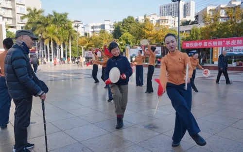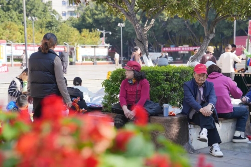 仁和商业文化广场上,随处可见散坐于长椅、花坛边的银发身影。他们在阳光的沐浴下亲切拉着家常、悠然注视着往来人群;百米外的烟火仁和国潮风情步行街人声鼎沸,康养游客结伴漫步,融入热气氤氲的小吃摊档与街头喧嚣,感受地道“烟火气”。