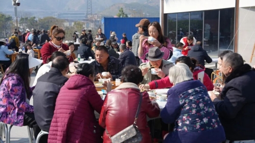 “这是我到仁和康养的第11年。”来自成都的游客彭新表示,“今天听说立新村有杀猪宴,我马上就来了,感觉这里就像第二故乡。”现场,红烧肉、酸菜血旺等地道农家菜肴陆续上桌,本地村民、康养老人与游客围坐共餐,举筷闲谈间,新年团聚的温馨氛围愈发浓厚。