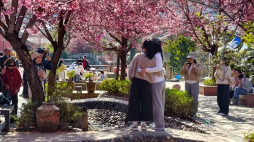 凭借古村风貌、冬日樱花与特色民俗,平地镇迤沙拉村成为元旦期间的热门打卡地。
