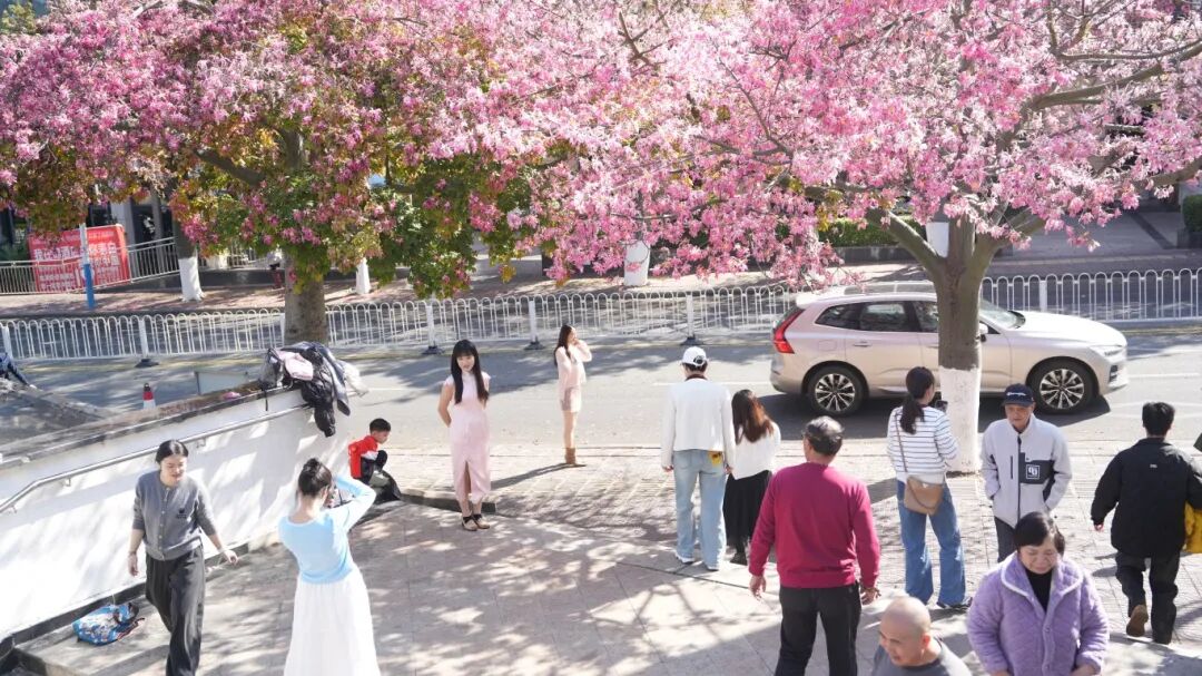 仁和冬日独有的异木棉与冬樱花,成为这个元旦假期最亮眼的“风景线”,更是催热了假日“赏花经济”,实现“花景变钱景”。上城广场更是成为城区吸睛打卡点,在此之前,不少外地咖啡车车主慕名而来,街头咖啡市集应运而生。