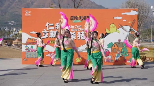 仁和镇立新村以沉浸式田园体验成为元旦节期间家庭出游首选。草坪上帐篷点点,孩子在无动力设施间奔跑嬉戏,家长则静享暖阳与闲暇,还有充满乡土气息的“杀猪宴”,为休闲体验增添浓郁乡土年味。