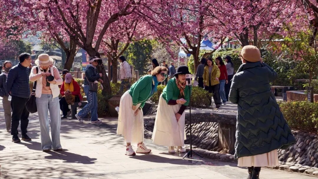 元旦期间,平地镇迤沙拉村冬樱花进入盛花期。村里依托“花开共富路 樱约迤沙拉”主题活动,让花景与民族风情深度融合,吸引游客纷至沓来。