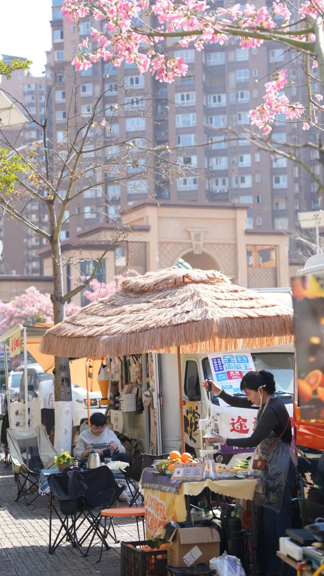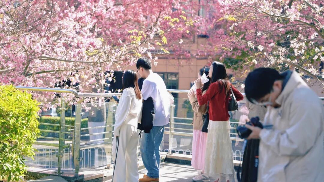 上城广场的异木棉树下,街头咖啡市集悄然兴起。外地咖啡车主慕名而来,以一杯热咖陪伴游人驻足赏花、拍照打卡,“赏花+品咖”成为仁和城区消费新场景。