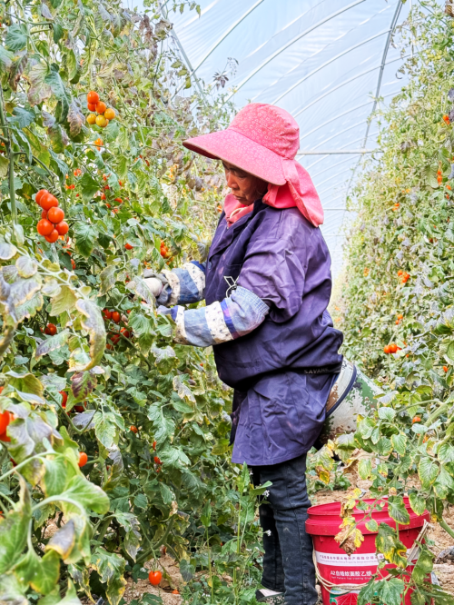 田间地头,金灿灿的“黄茹”小番茄挂满藤蔓,果香四溢。村民们穿梭在大棚中采摘、搬运、装车有条不紊。筐筐饱满的果实映衬着丰收的喜悦。目前,下一茬6万余株番茄苗已开始培育,计划明年1月底栽种,为后续持续增收蓄力。