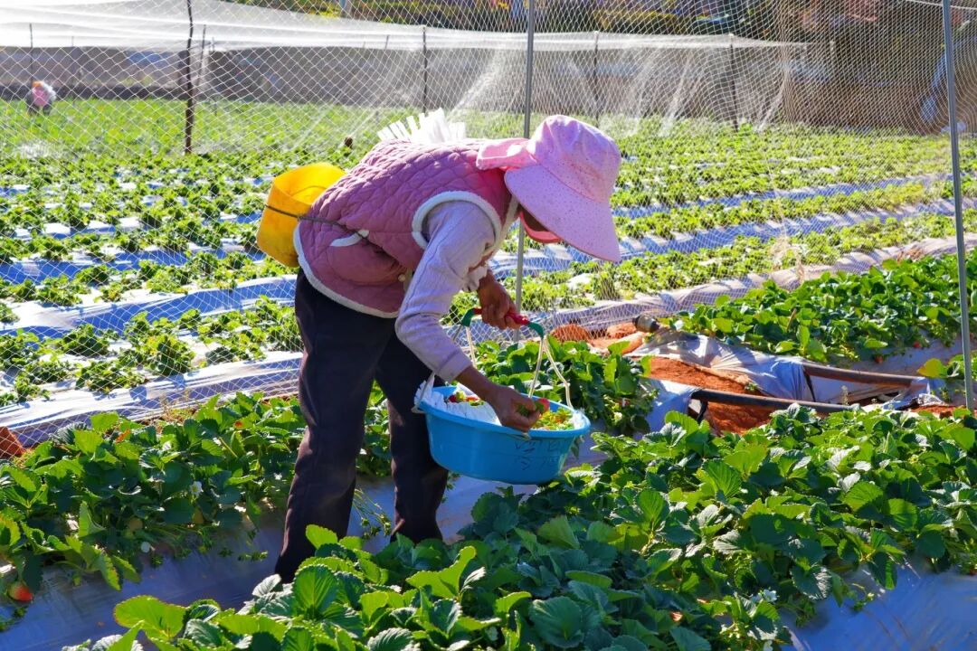 △ 果农在采摘草莓