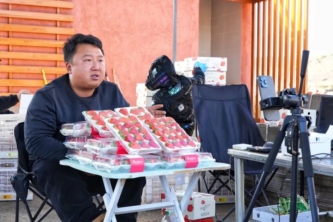 △ 电商主播在果园里搭建直播间销售草莓