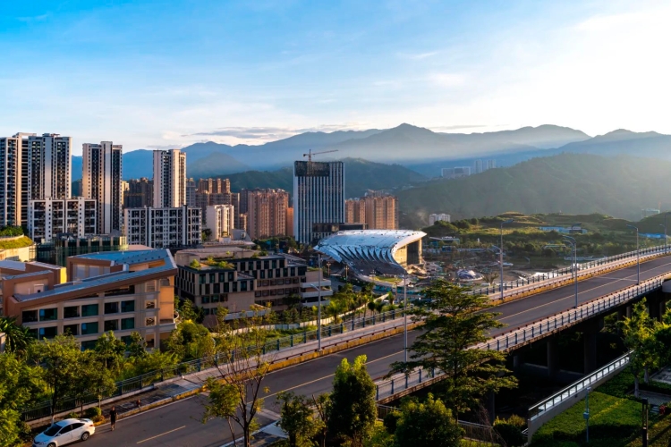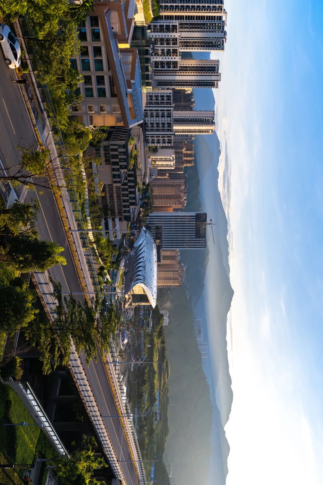 晨光浸着山峦的雾,建筑在路桥旁舒展,新起的轮廓裹着绿意,把仁和的生长写在了晴日的风里。
