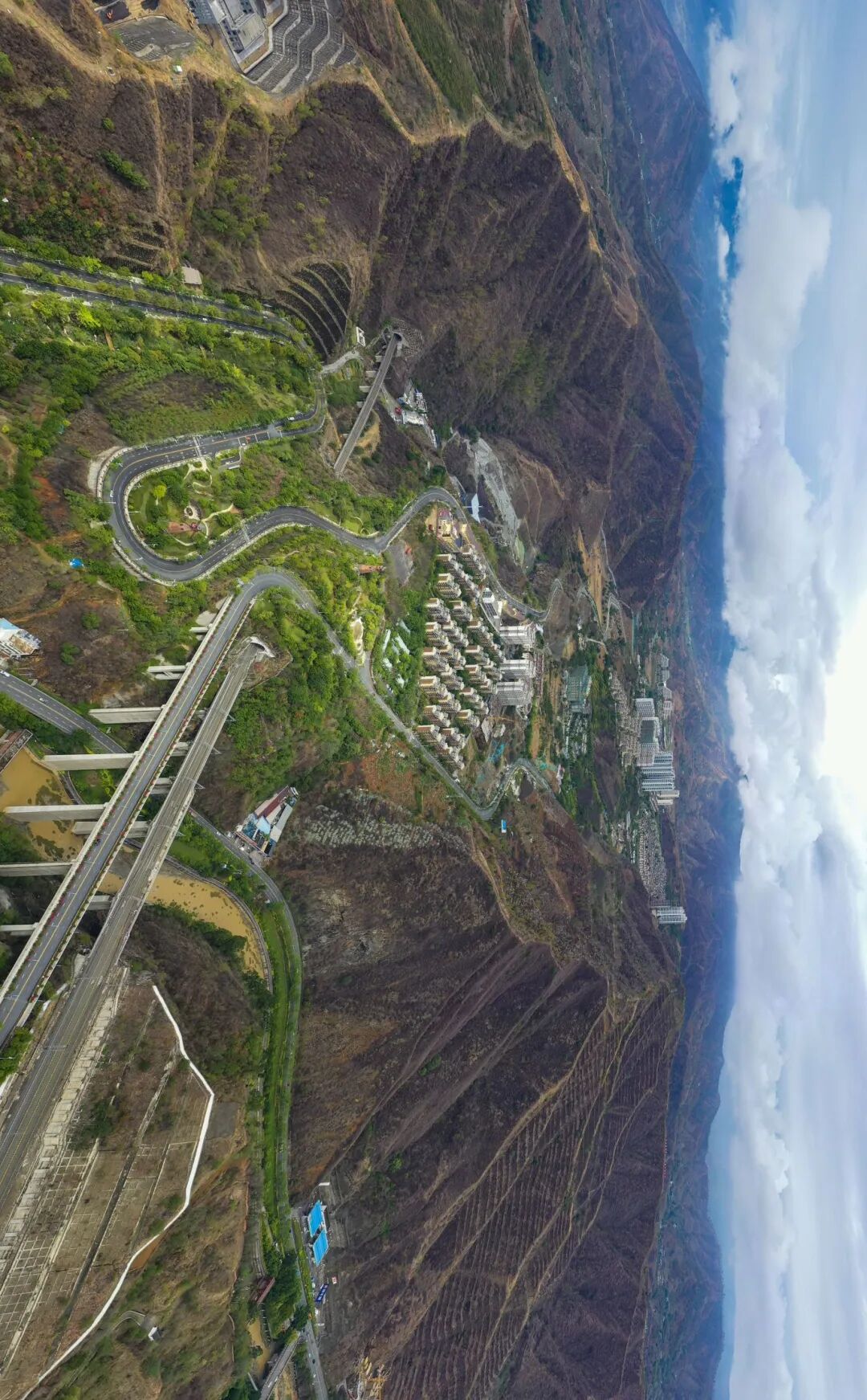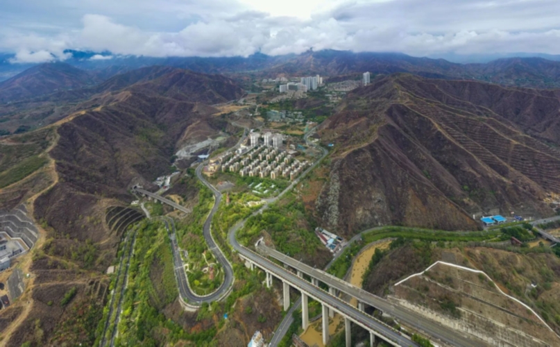群峰褶皱里,公路与桥隧缠成蜿蜒的线,把普达阳光国际康养度假区嵌进山的脉络里。