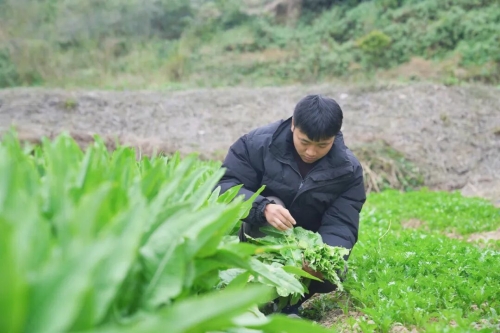 27岁的谭祥瑞站在菜地里,俯身清理贡菜老叶,查看菜苗长势。“试种的这8亩贡菜亩产大概一万斤,制成干菜每亩能卖5000到7000元。”谭祥瑞流转了30余亩土地,已有20余亩投入使用。贡菜采收后,他计划依次种下辣椒和玉米,一年三季轮作,预计全年总收入12万至15万元。