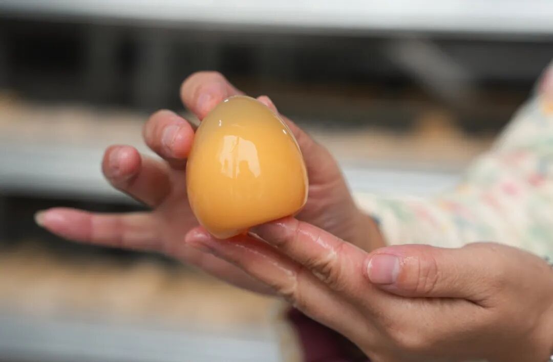 工坊渐入佳境,日产能达到3000至4000枚。她通过“线上直播带货+线下渠道铺货”,月销量稳定在2万余枚。“我们的产品可以全国快递到家,还漂洋过海端上了澳大利亚消费者的餐桌。”她开心又自豪。