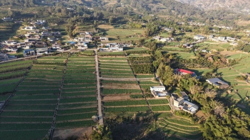 清晨,阳光越过山巅洒向大块平整的共和村豌豆梯田,村民拿着背篓忙碌的身影来来往往;田地旁,运输车辆早早等候,准备装车运往打包点,全程快捷高效。