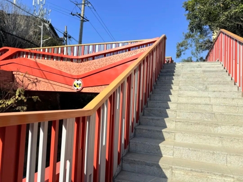 此次改造直击痛点,从基础设施的“筋骨重塑”到功能场景的“颜值升级”,改造工程精准发力补短板。项目以南山花园改造为核心,覆盖周边五摩路、南岭路等基础设施建设内容,累计完成1.4万余平方米路面沥青铺设,翻新1.1万平方米人行道及7200平方米车行道;铺设排水管网1000米,预埋强弱电管网2620米,根治管线杂乱问题;新增人行天桥、公交站台、路灯等设施,并对交通标线与绿化进行系统优化。