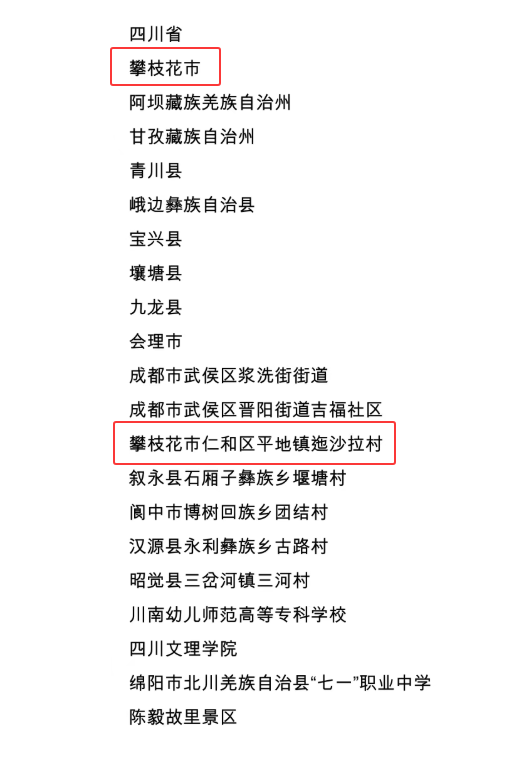 近日,第十二批全国民族团结进步示范区示范单位名单公布,攀枝花市成功上榜,攀枝花市仁和区平地镇迤沙拉村亦跻身其中,双喜临门的佳绩,为这座川滇交界的城市再添民族团结的闪亮名片。