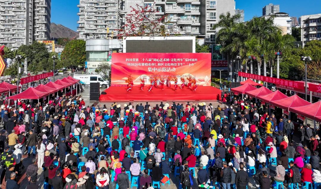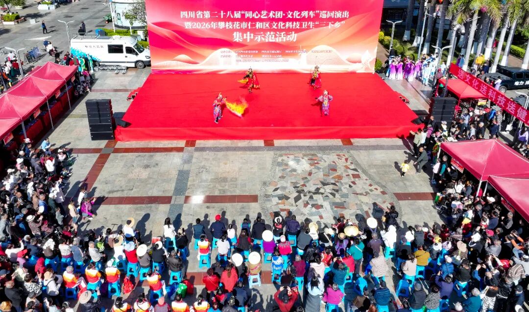 精彩的歌舞表演引来台下阵阵喝彩,义诊台前医生耐心解答健康疑问,孩子们围着机器狗目不转睛……2月10日上午,四川省第二十八届“同心艺术团·文化列车”巡回演出暨2026年攀枝花市仁和区文化科技卫生“三下乡”集中示范活动在仁和文化广场举办。