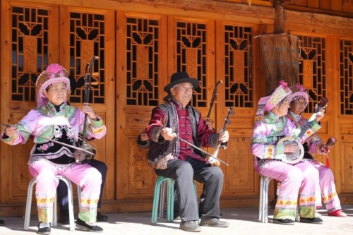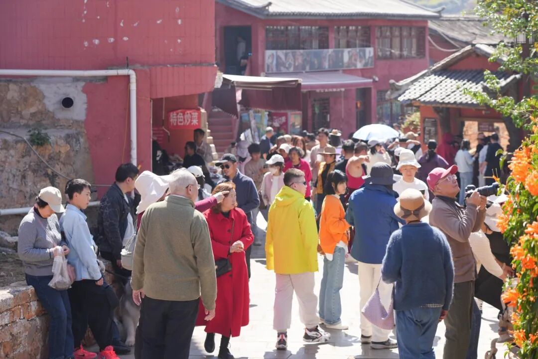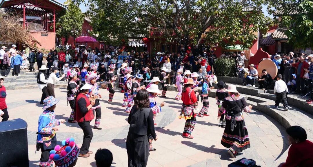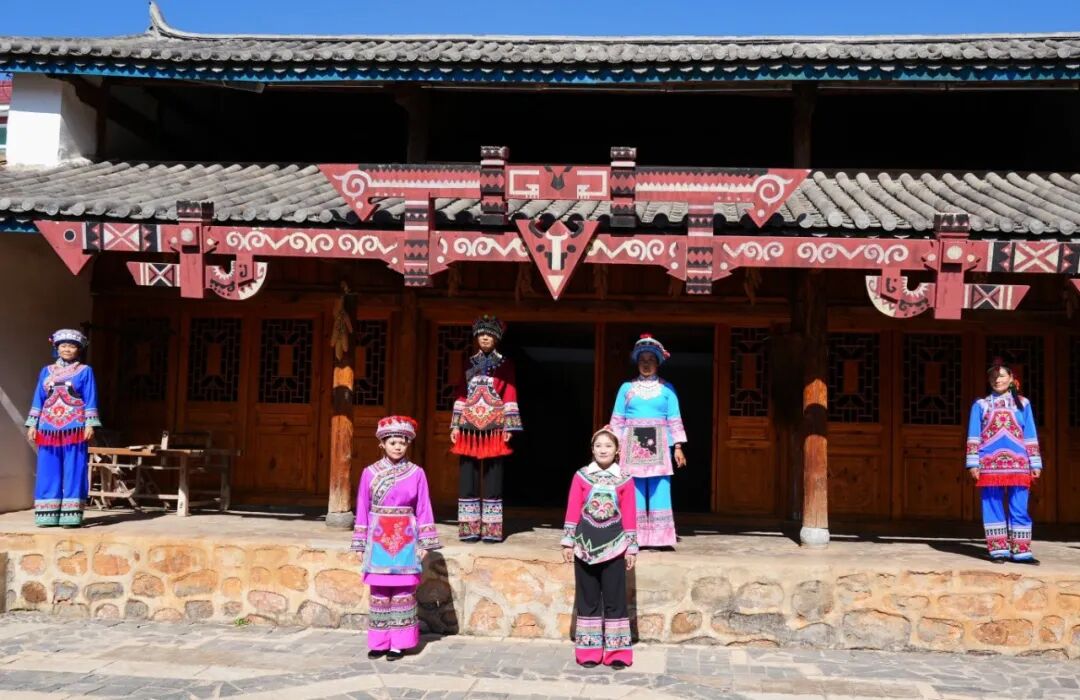 午后时分,迤沙拉的热闹氛围愈发浓郁。非遗小院里,情景剧《迤啊·迤沙拉》生动上演,艺术化再现迤沙拉的历史变迁、马帮传奇与彝族日常烟火,以鲜活故事诉说村落文脉,让游客沉浸式感受这里独特的文化魅力与人文情怀。悠扬的谈经古乐弦音绵长,古韵悠悠,流淌出岁月沉淀的宁静与雅致。村民们身着绚丽彝家传统服饰依次亮相,精美银饰随步履轻摇作响,与斑斓衣料、精巧刺绣交相辉映,尽显浓郁民族风情,引得现场游客纷纷举起手机,争相定格这动人瞬间。