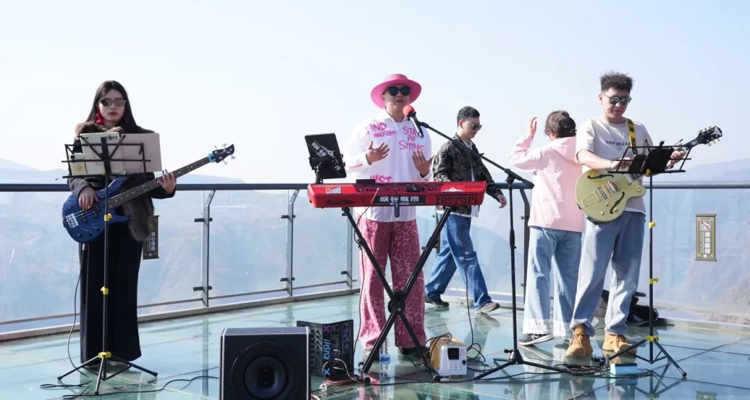 上午10点,在金沙江大峡谷旅游区观景台,一场充满烟火气息的音乐会倾情上演。一首首脍炙人口的歌曲,伴着山间清风与金沙江的潺潺流水,在峡谷间婉转回荡。现场游客或凭栏聆听,或轻声跟唱,眉眼间满是笑意与惬意。脚下是壮阔峡谷,耳畔是温柔歌谣,别有一番韵味。