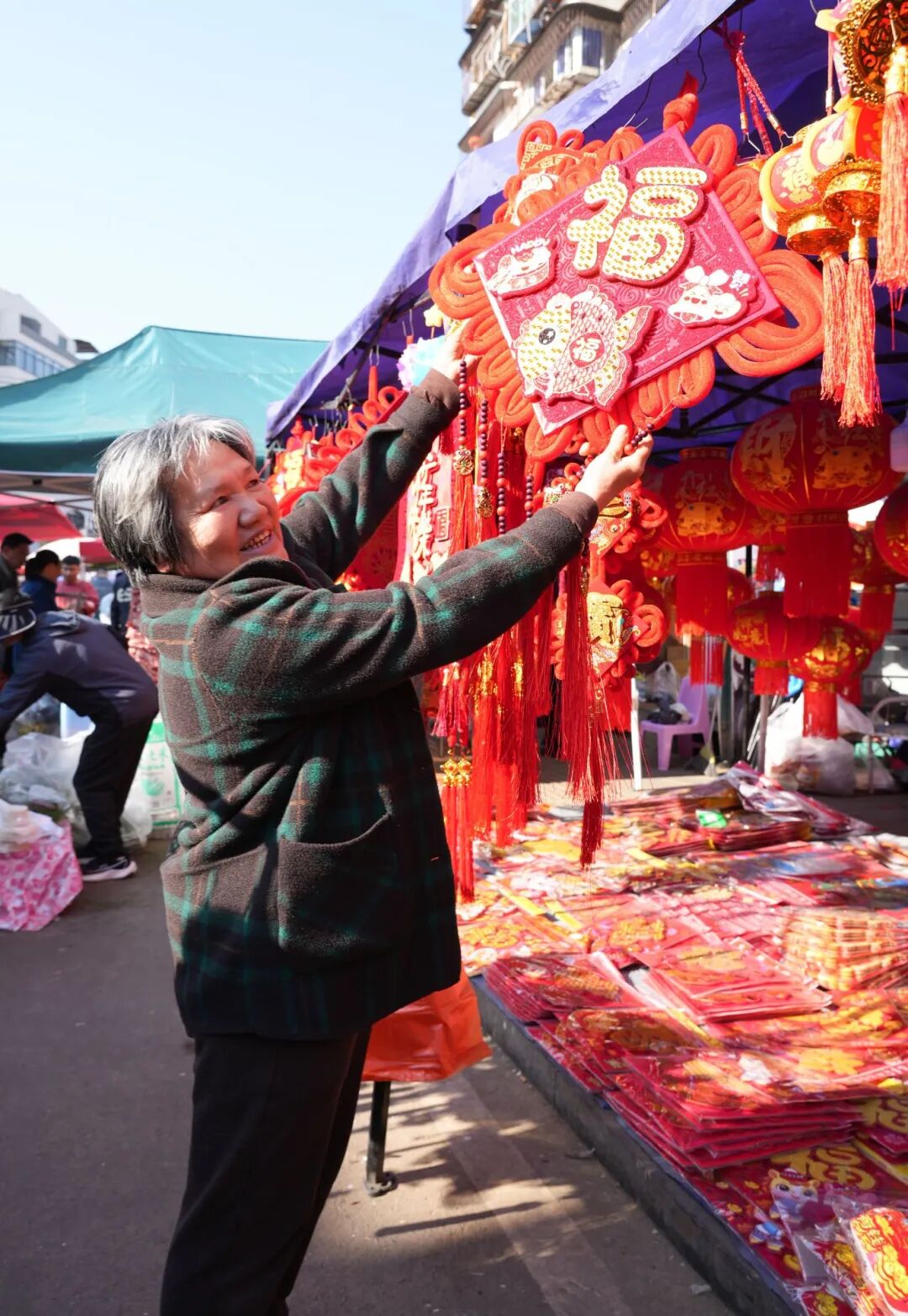 2月15日一早,仁和农贸市场热闹开集。红彤彤的灯笼与各类新春饰品挂满摊位,讨价还价声、孩子的嬉笑声、摊主的招呼声交织在一起,一首鲜活的春节序曲,瞬间拉满年的氛围。