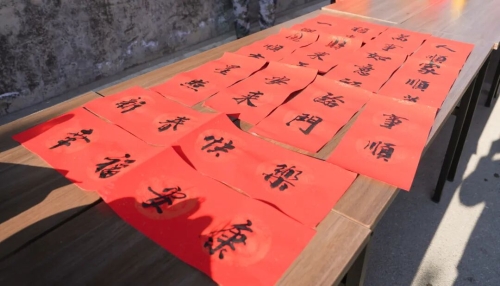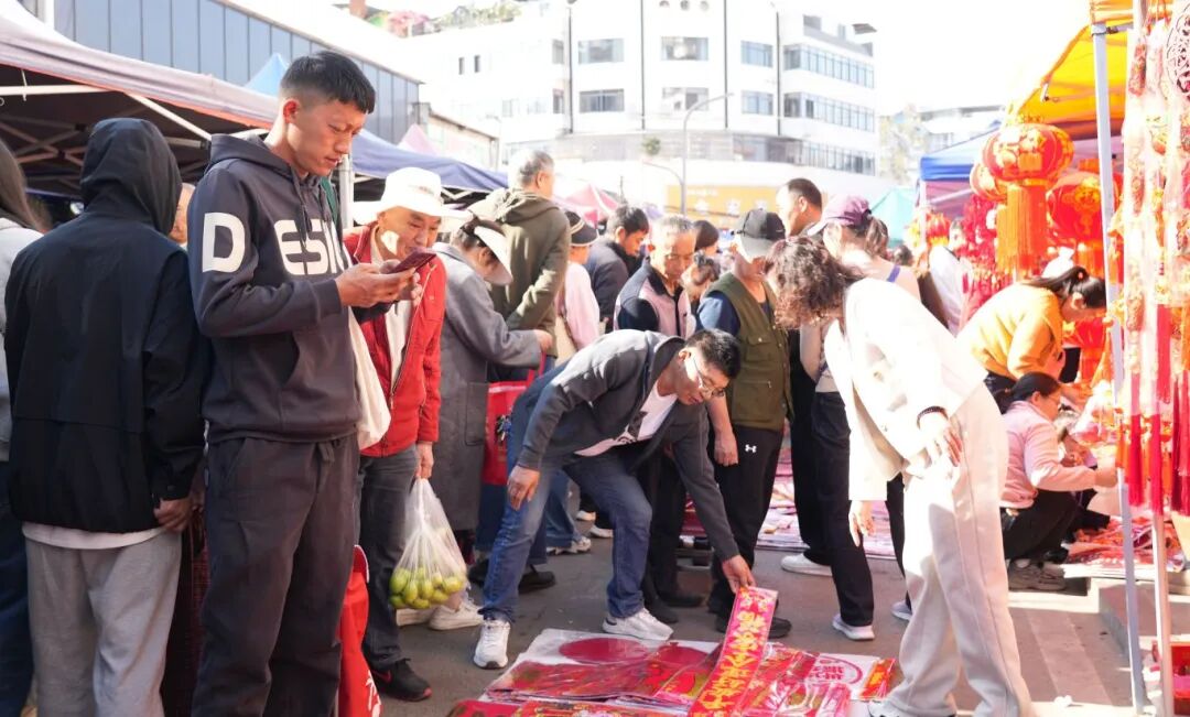 集市的热闹不仅在物资的丰饶,更在文化的浸润。市场内,“新春送福” 专区同样被围得水泄不通。书法爱好者们现场挥毫,将马年的期许凝于笔端,一幅幅寓意昂扬的春联、一个个饱含温度的福字跃然纸上。刚买完农特产的市民和游客纷纷驻足,挑选心仪的新春祝福,把满满的福气与年味一同装进了行囊。