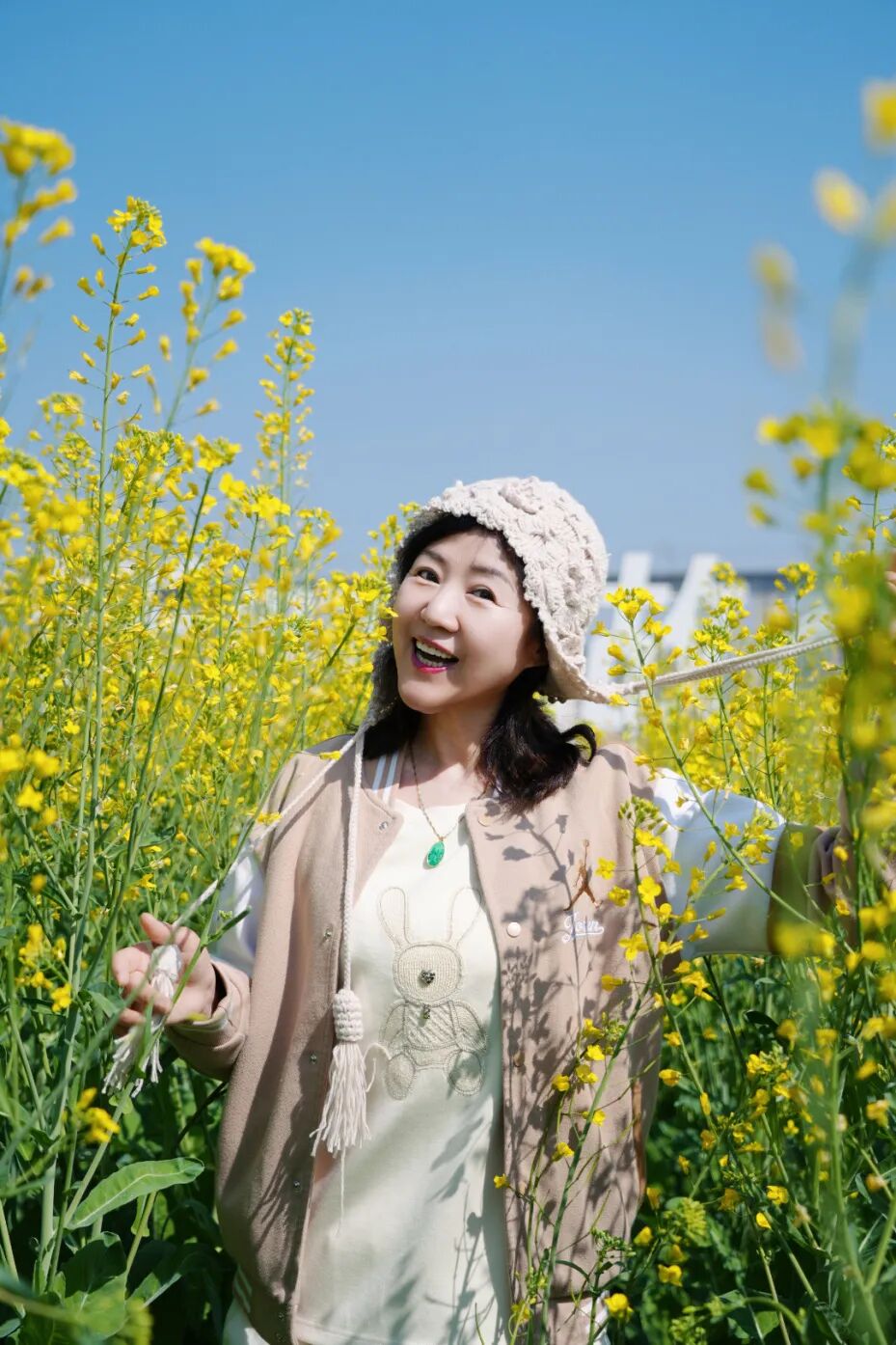 “春节没有远行,家门口的油菜花开得正盛,特意约着姐妹们一起出来拍照打卡,满眼都是春天的气息,真是一秒入春的感觉。”市民吕斌换上一身清爽春装,在金色花海里摆着姿势拍照,笑容与春光相映。