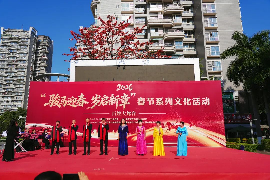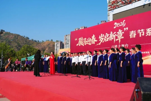 早晨10点,仁和商业文化广场歌声悠扬、热闹非凡,2026“骏马迎春 岁启新章”春节系列文化活动准时开演。合唱铿锵有力,乐器演奏婉转悠扬,《山丹丹开花红艳艳》《喜洋洋》等经典喜庆曲目轮番上演,欢快的旋律回荡在广场上空。