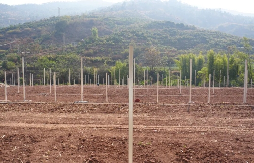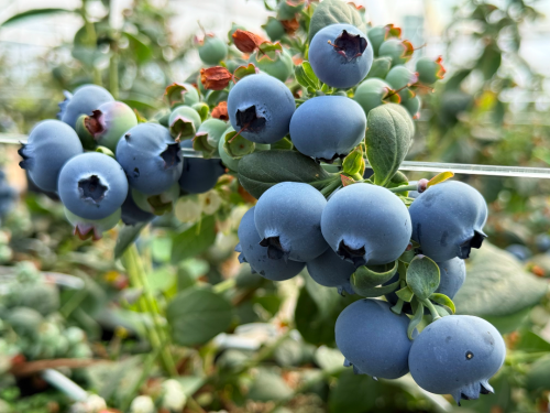 去年3月,啊喇彝族乡通过招商引进企业落地建园,基地总占地470亩,规划建棚250亩,同年7月初启动种植。基地选用云南优质蓝莓种苗,单次引种可挂果五年。