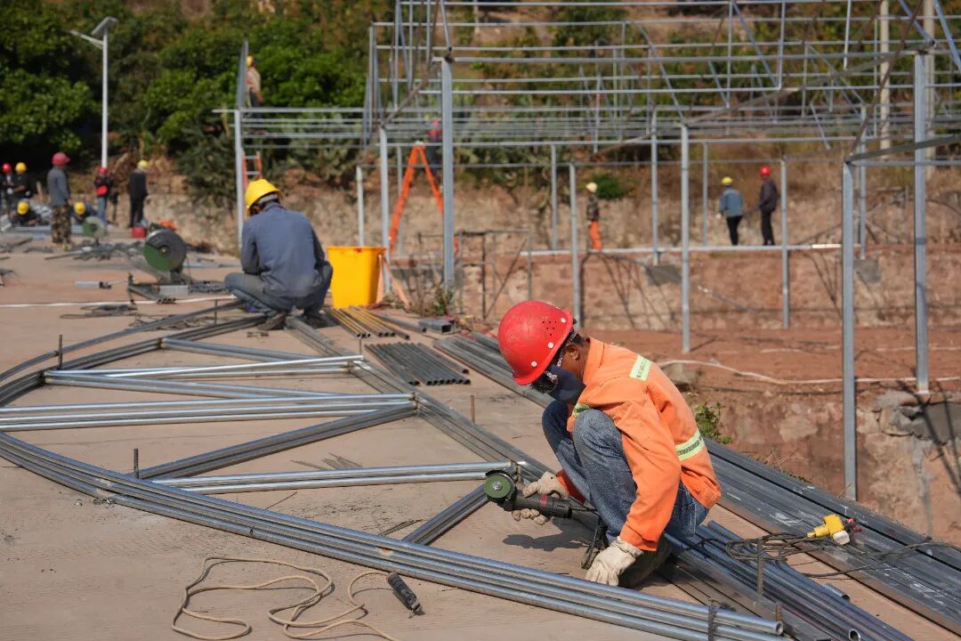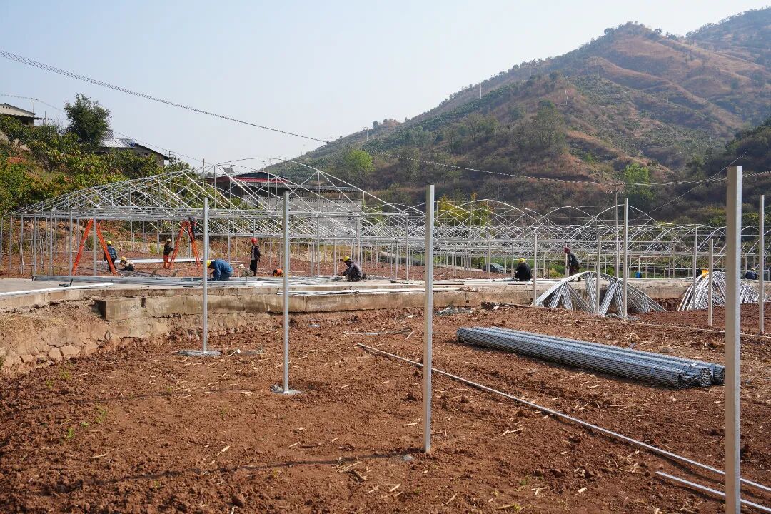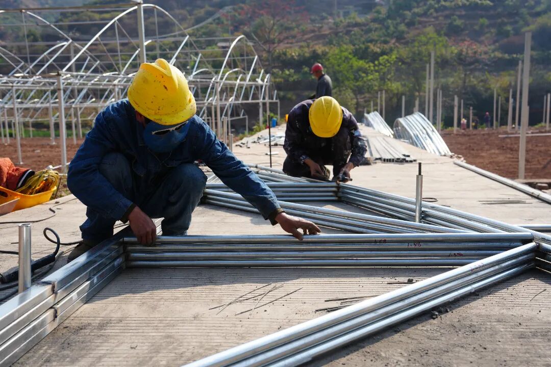 施工现场,工人焊枪下火花闪烁,一根根钢梁被精准拼接……先锋村优质蓝莓示范基地项目于今年2月底开工,目前大棚主体全面完工,随后进行覆膜、安装水肥一体化等配套设施,确保月底前完成蓝莓苗移栽。