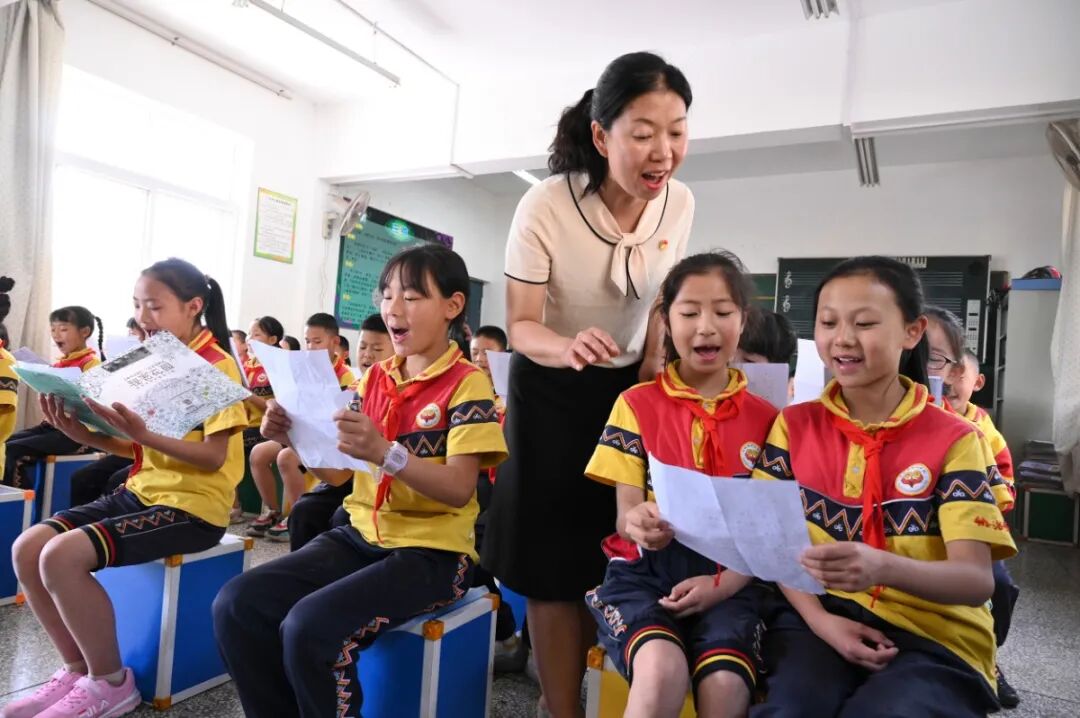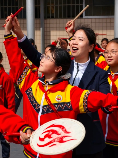 从那以后,她的口袋里总揣着一个皱巴巴的采风本。无数个周末和假期,张茂丽都会带着老师们走村入户,追着老艺人记谱、学舞。“最开始老师们不太理解,为什么全校师生都得学,太费精力。”张茂丽回忆,“但慢慢地,大家从这些古老的调子里,听出了文化传承的回响。”