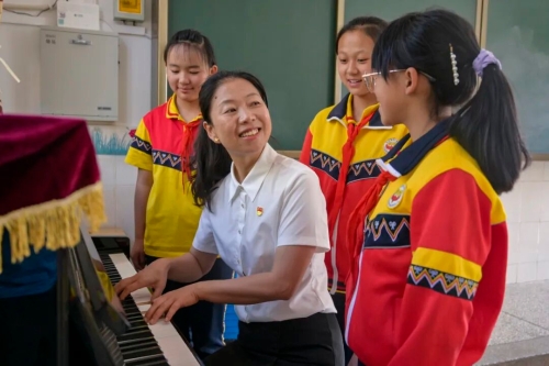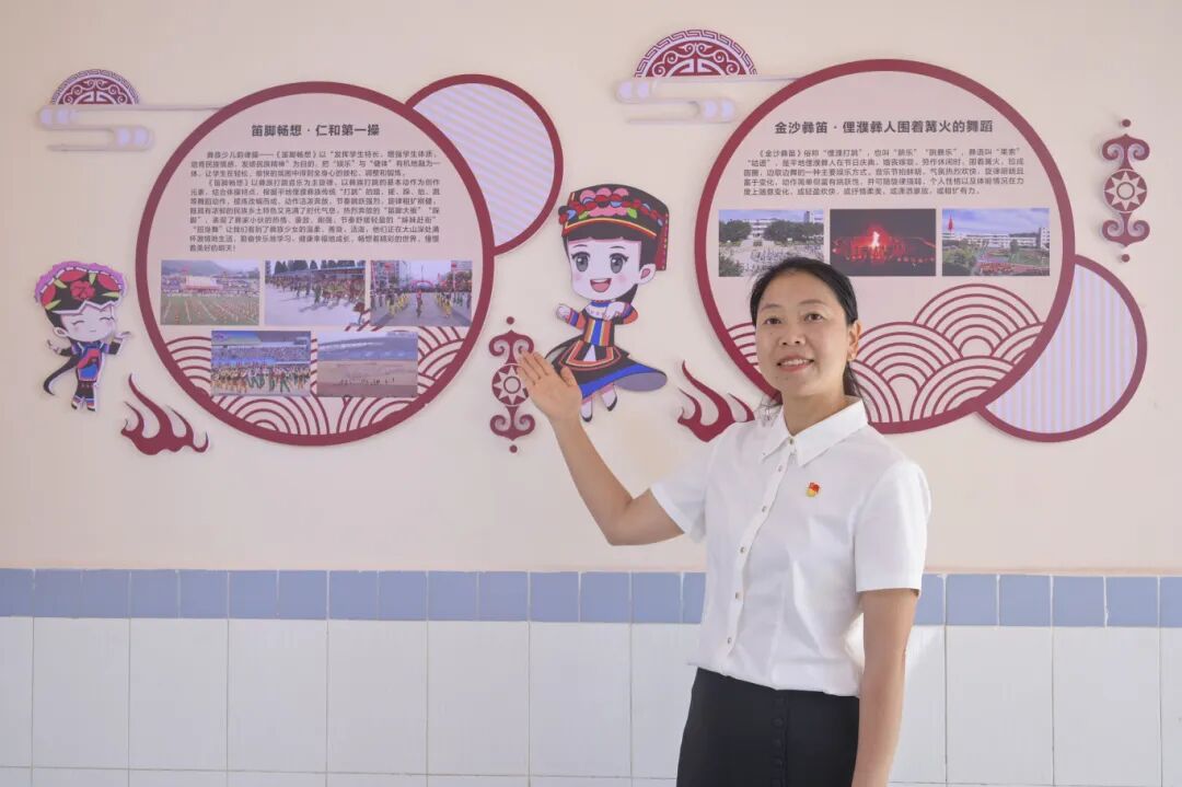 20年过去,她带着团队一点点把本土民族文化“揉”进了课堂:课间操跳改编的羊皮鼓舞,美术课学彝绣、做挂饰,语文课讲本土故事,音乐课奏谈经古乐……她推动民族文化“全学科融合、全学段覆盖”。
