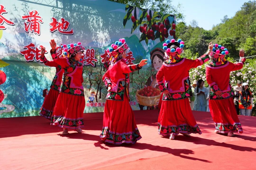 拦门酒余韵未散,文艺节目接连登场。歌曲《又见樱桃红》率先唱响,《醉美苍蒲》民族舞蹈、脸谱表演等依次呈现。民俗风情与乡村活力相融,演员与游客的互动穿插其间,台下掌声此起彼伏。