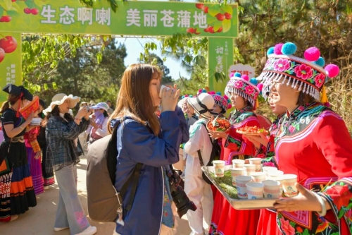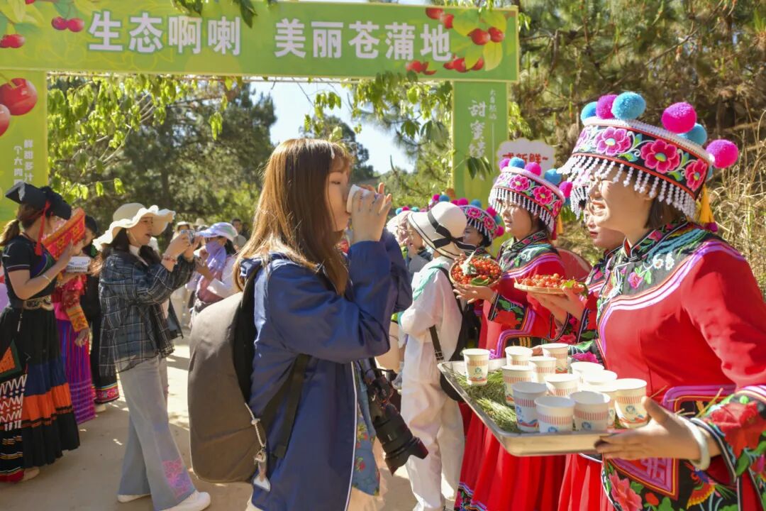 清晨的村口,拦门酒已经斟满。身着艳丽民族服饰的村民早已列队,手捧盛满樱桃和蓝莓的藤筐笑脸相迎。悠扬的迎客歌声响起,游客们还未入园便已感受到浓浓的民俗风情。“欢迎仪式相当地道!”一位刚接过米酒的游客赞叹道。