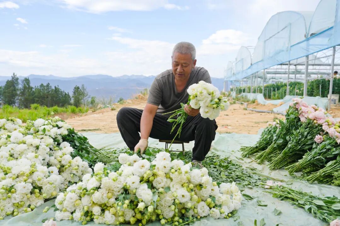 “这片地我们去年才种下第一批苗。”刘小波介绍,基地由运营公司通过承包村民土地启动试种,并实行统一管理。刘小波算了一笔账:洋桔梗亩产每茬2万至3万枝,一年两茬,扣除承包土地、大棚建设、人工和物流成本后,利润依然可观。