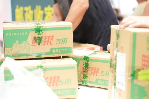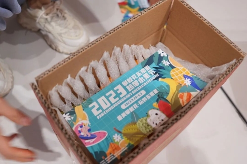 要说人气旺,当属展区的邮寄打包点,前来邮寄水果的顾客络绎不绝,工作人员正忙着打包、粘贴快递单号。这个水果邮寄点,短短三天,已免费揽收快递约300余件。工作人员介绍,“今天(5月2日)的量相比前三天是最多的,截至目前(下午3点),已经打包了差不多200多件,还有源源不断的顾客拿果子来邮寄。大家邮寄的品种主要是车厘子、椰子、蛇皮果,不少寄往北京、江苏、云南、成都等地。
